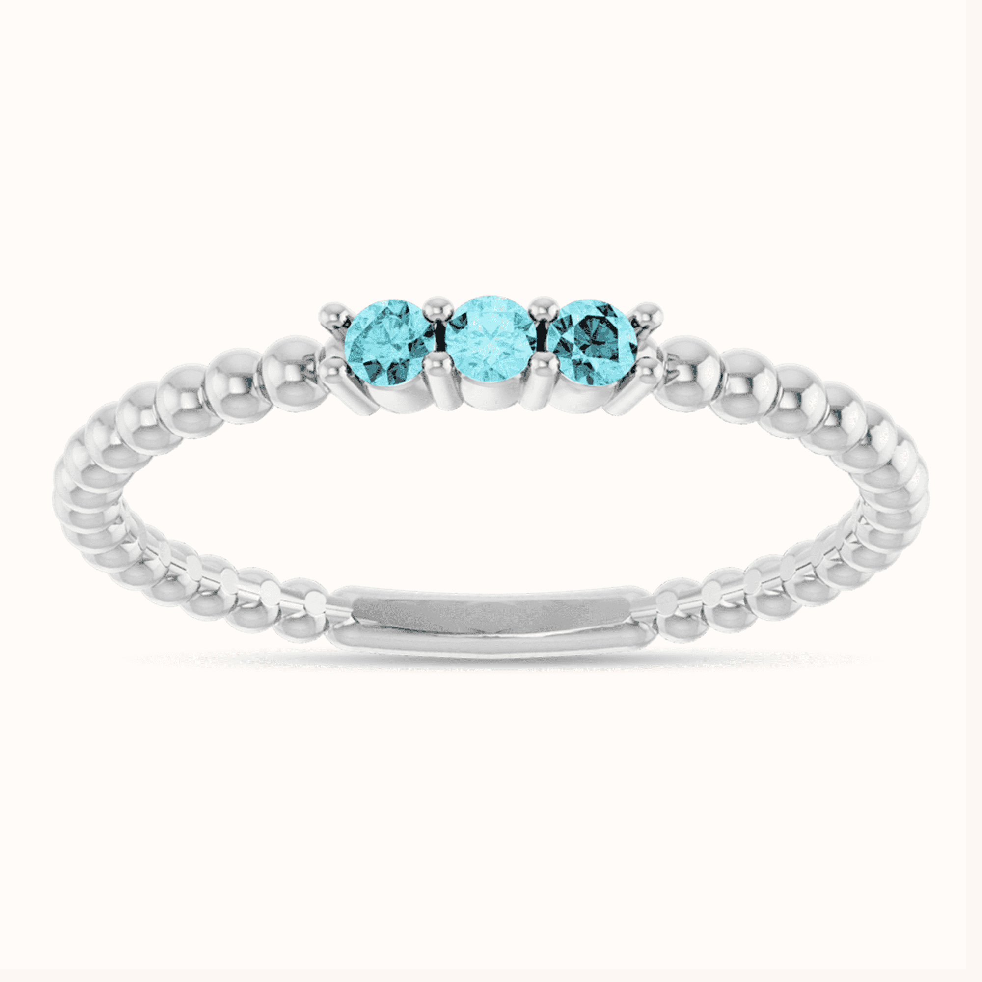Discover the delicate charm of these exquisite beaded rings, expertly crafted in 14K white or yellow gold for timeless elegance. Each ring features three vibrant 2 mm round faceted gemstones choose from natural blue zircon, natural pink tourmaline, or natural amethyst, all of AA quality for exceptional brilliance and color. Alternatively, opt for the sparkling 1/10 CTW natural diamond beaded ring, showcasing three G-H color, I1 clarity diamonds for classic luxury. Set in a secure 4-prong mounting with a polished finish and rhodium plating (14K white gold), these beaded rings offer a refined, dainty look perfect for stacking or wearing solo. Ideal as birthstone rings, stackable bands, or dainty rings, they make a meaningful gift for any occasion.