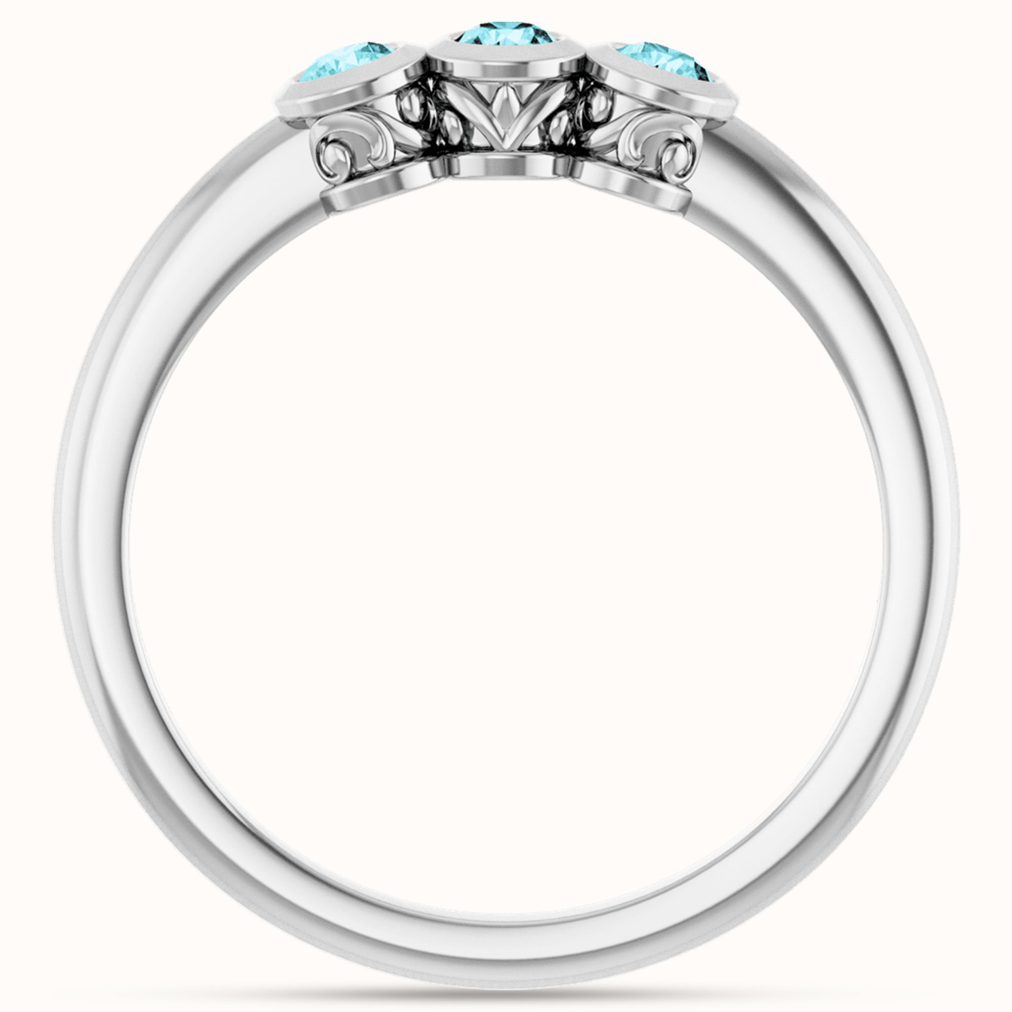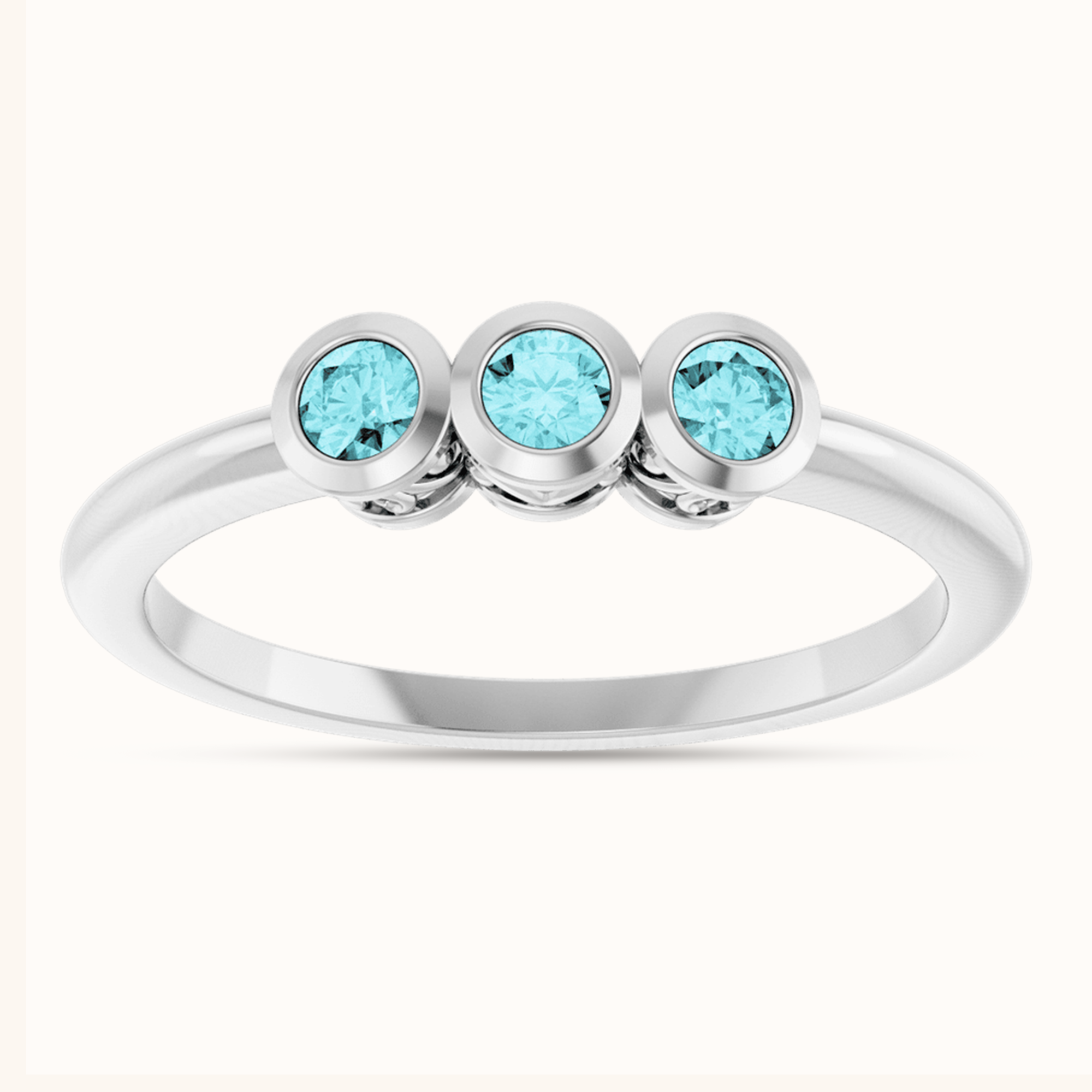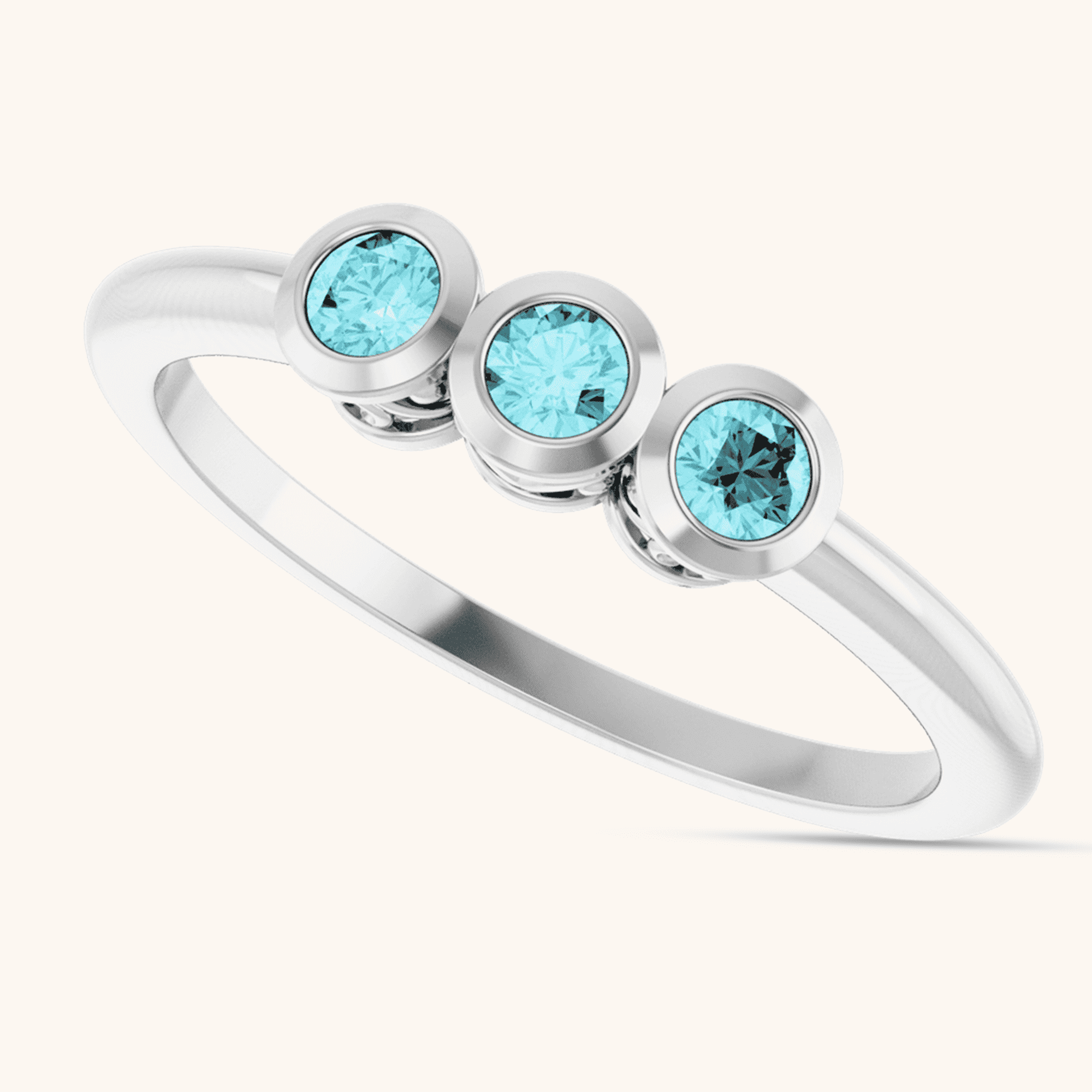 The blue zircon stones shimmer with an ocean-like brilliance, complemented by a smooth, polished bezel setting that ensures comfort and long-lasting beauty. Whether in fine silver or glowing gold, this ring brings out timeless charm with a modern twist.