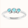 Discover elegance with our three-stone ring featuring natural blue zircon and diamonds. Available in sterling silver or 14K gold — a fine jewelry classic.